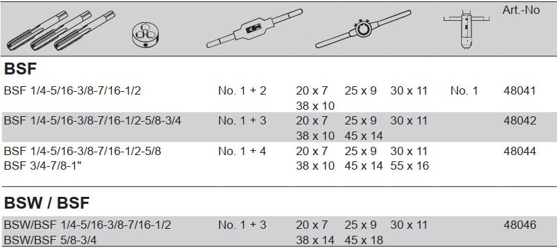 Chi tiết thông số kỹ thuật Bộ taro bàn ren hệ inch Volkel 48044