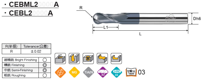 Dao phay cầu hợp kim 2 me CMTéc CEBL2…series