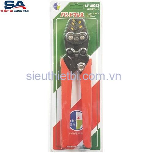 Kìm bấm đầu cos 1.25-14 mm2 BUDDY A0022 chuyên sử dụng bấm cos điện, bấm cos pin, cos trần, kìm bấm cosse có bánh răng trợ lực giúp bấm cos rất nhẹ nhàng, tay kìm bấm cos được bọc lớp nhựa mềm khi cầm rất êm tay, chống trơn trượt, đầu kìm bấm cos được chế tạo thép CR-V rất cứng giúp bấm cos đẹp hơn, chính xác hơn…