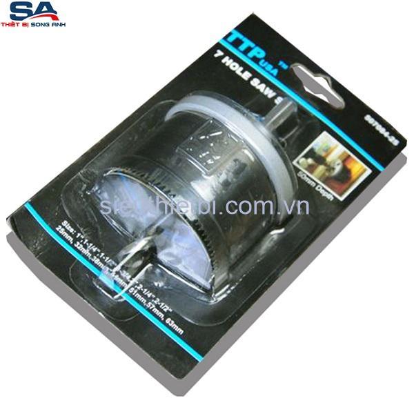 Lưỡi khoét lỗ gỗ Ca-Bon 7 đầu TTPusa với các kích thước khác nhau như: 25mm, 32mm, 38mm, 44mm, 51mm, 57mm, 63mm, được sử dụng để khoét lỗ trên gỗ và có thể cắt được carton, tấm ván, ván ép và nhựa.