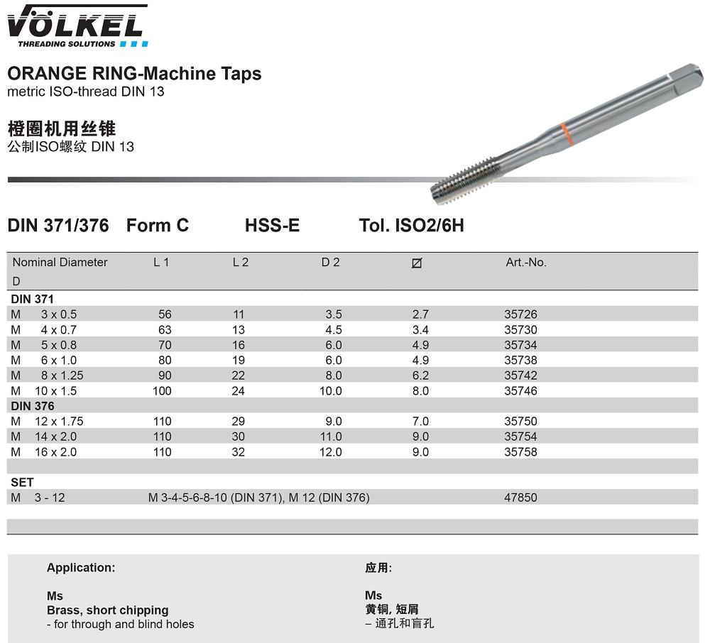 – Taro vật liệu HSS-E tiêu chuẩn DIN 371/376, DIN 13.
