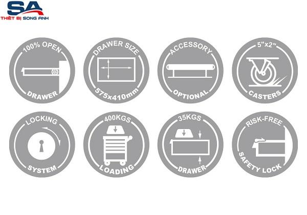 – Xe đẩy dụng cụ 7+2 ngăn kéo