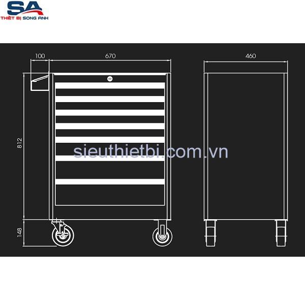 – Khay dụng cụ hữu ích / tay cầm bên đặc biệt giúp xe đẩy dụng cụ dễ dàng di chuyển.