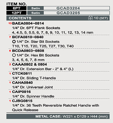 Giá gốc là: 1,034,000 ₫.922,900 ₫Giá hiện tại là: 922,900 ₫.Bộ tuýp 1/4″ 32 chi tiết Toptul GCAD3205