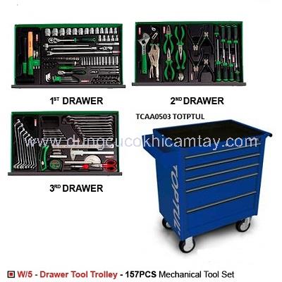 Giá gốc là: 10,747,000 ₫.9,595,300 ₫Giá hiện tại là: 9,595,300 ₫.Xe đồ nghề 5 ngăn 157 chi tiết Toptul GCAJ0055