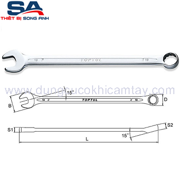 Giá gốc là: 42,900 ₫.37,400 ₫Giá hiện tại là: 37,400 ₫.Cờ lê vòng miệng dài hệ inch Toptul ACAL1212